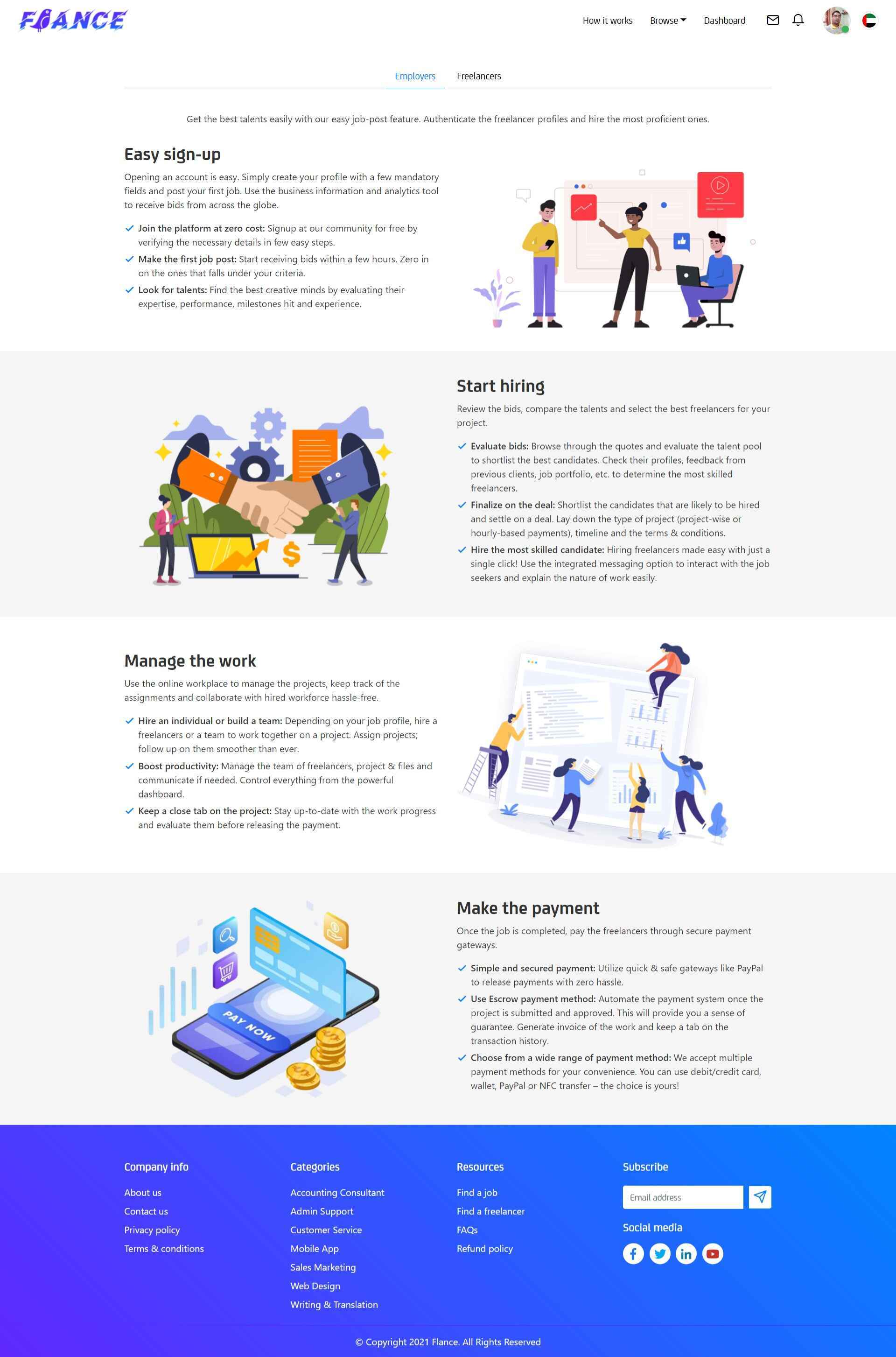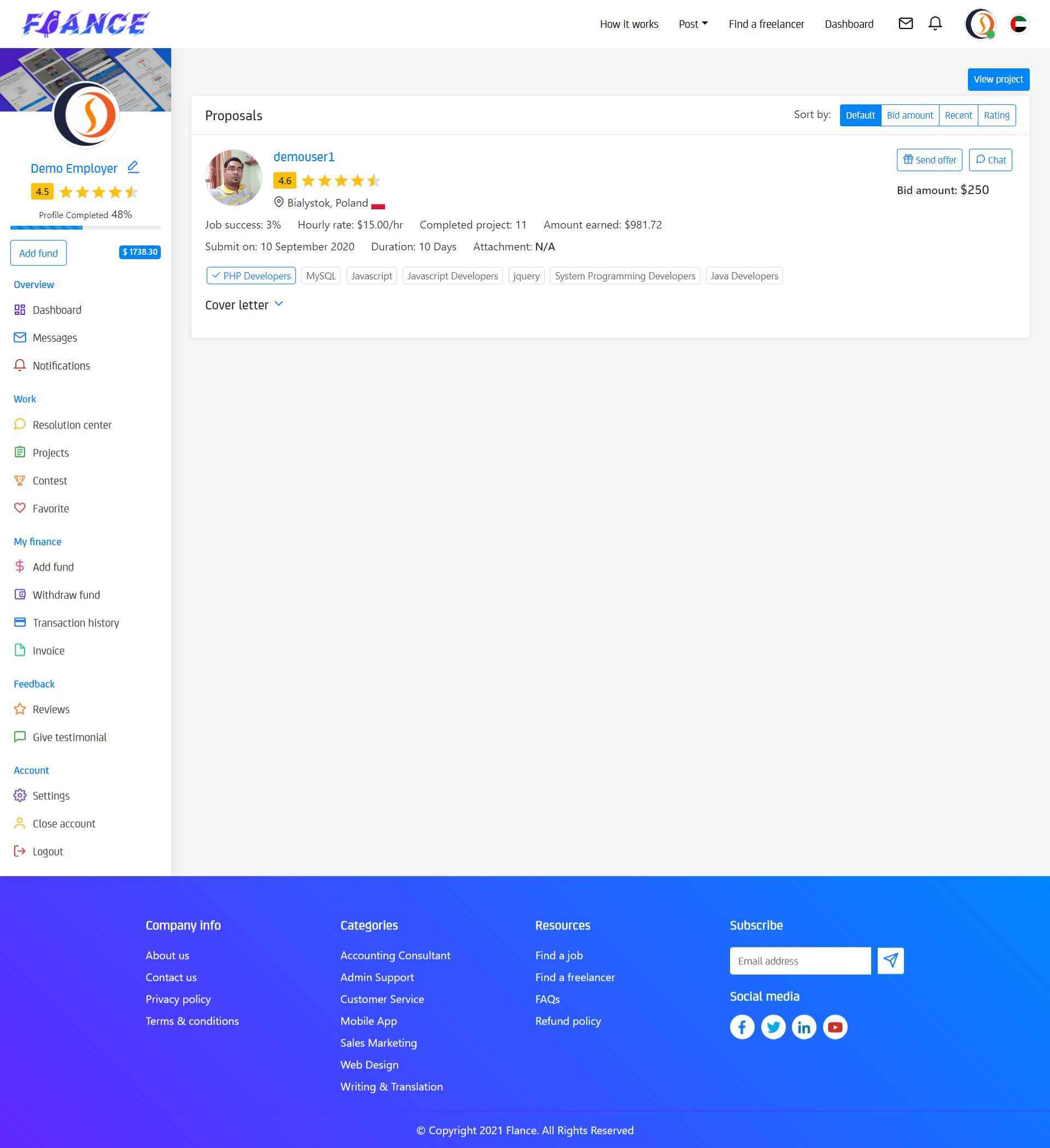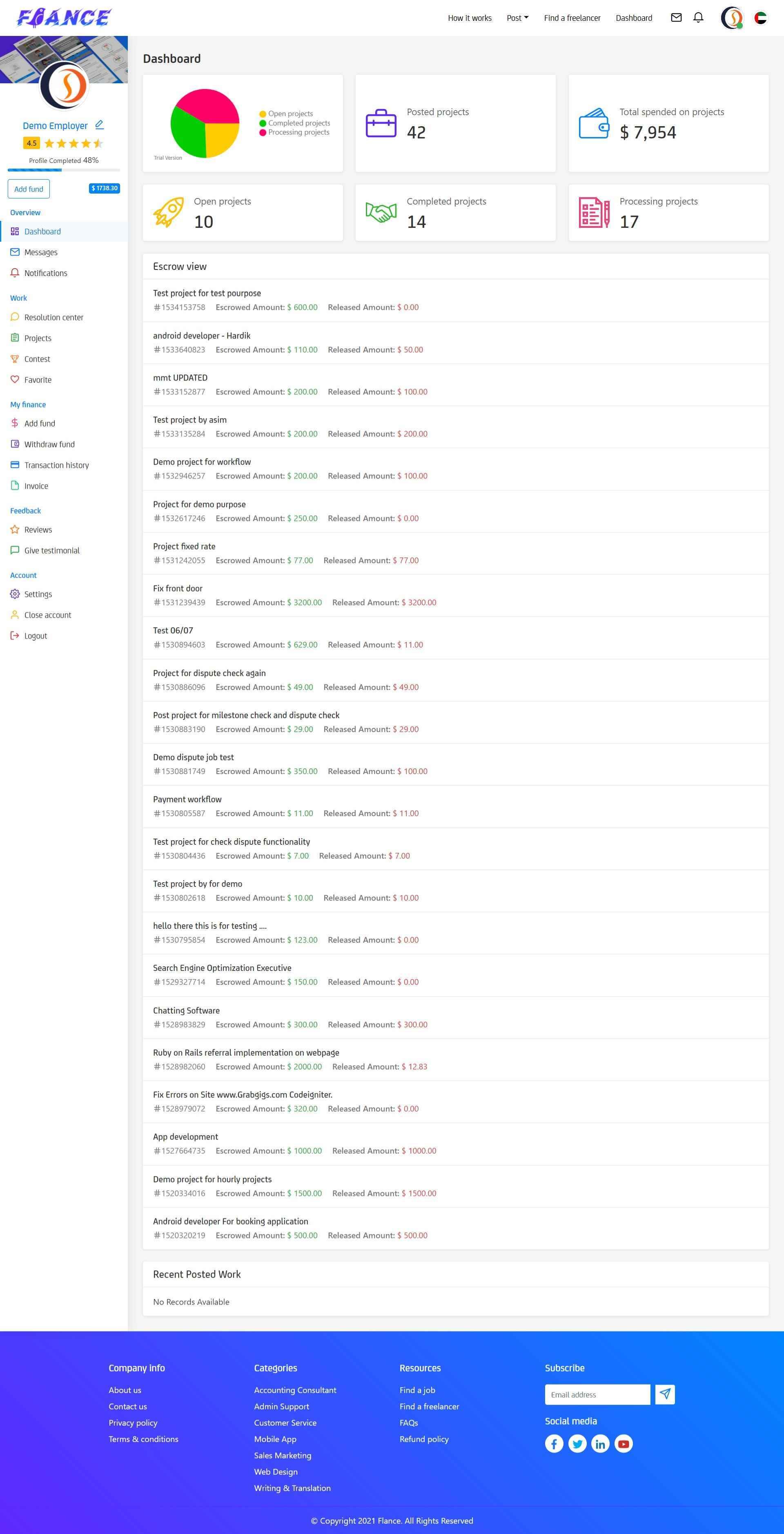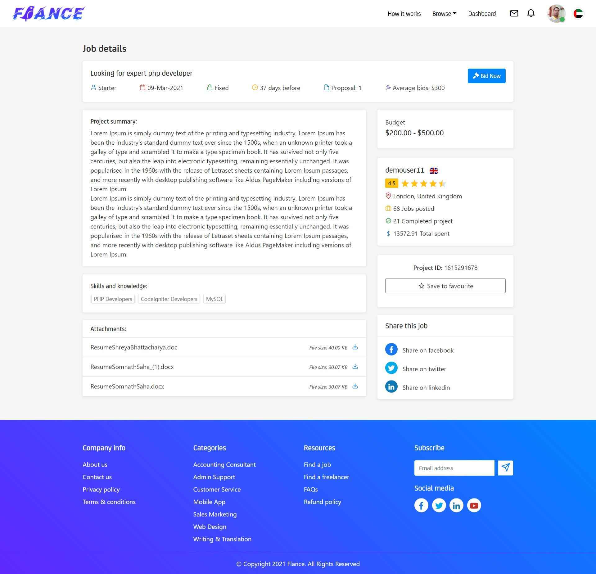 Wondering how the pages of freelance clone script are going to look like? Fret not – we got it covered. Check out the model pages from every section – Employer, Freelancer, Admin and other associated pages.