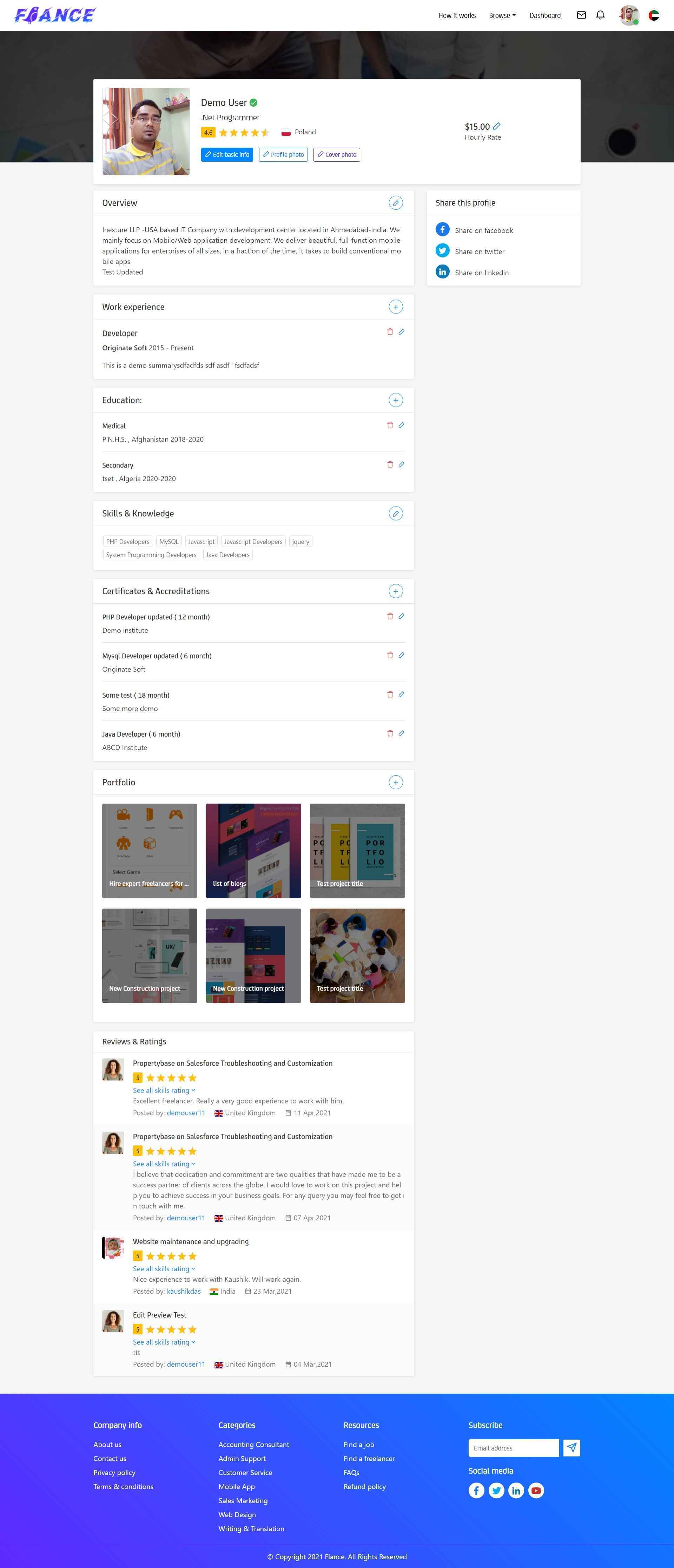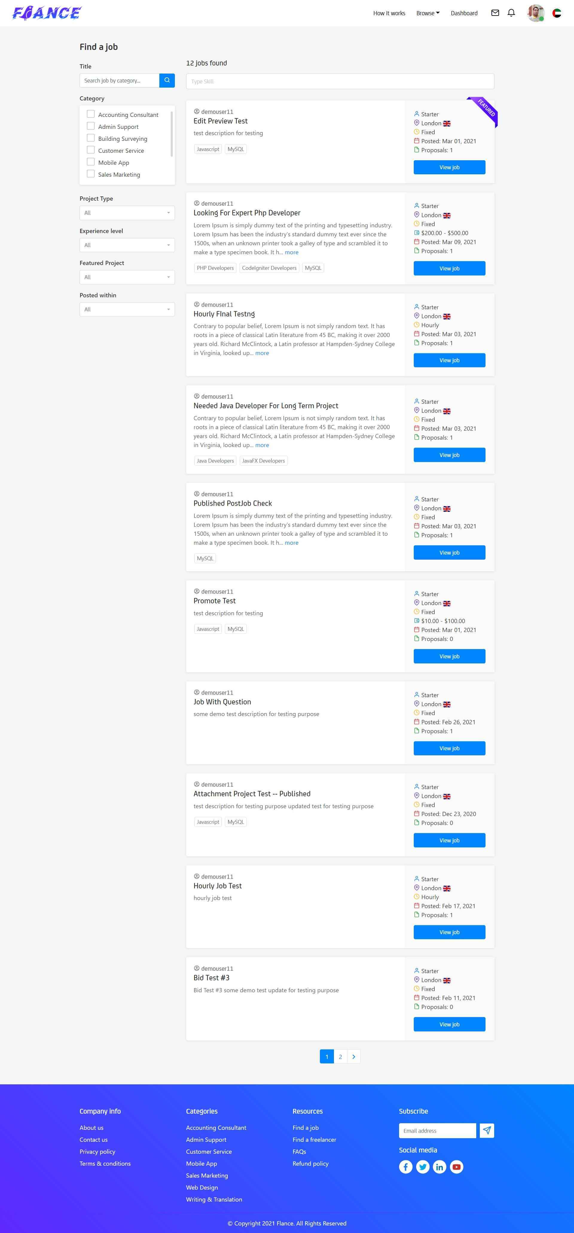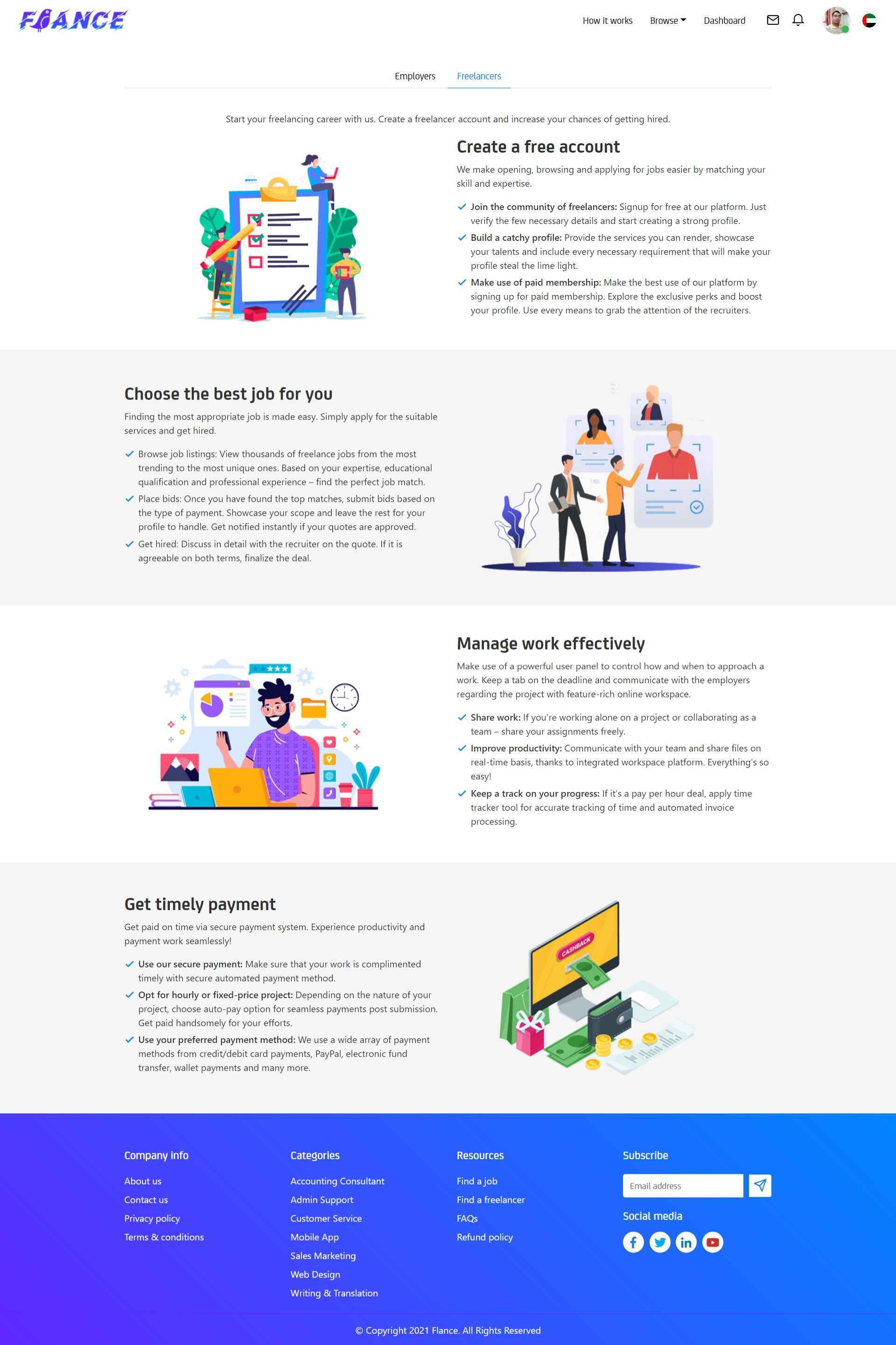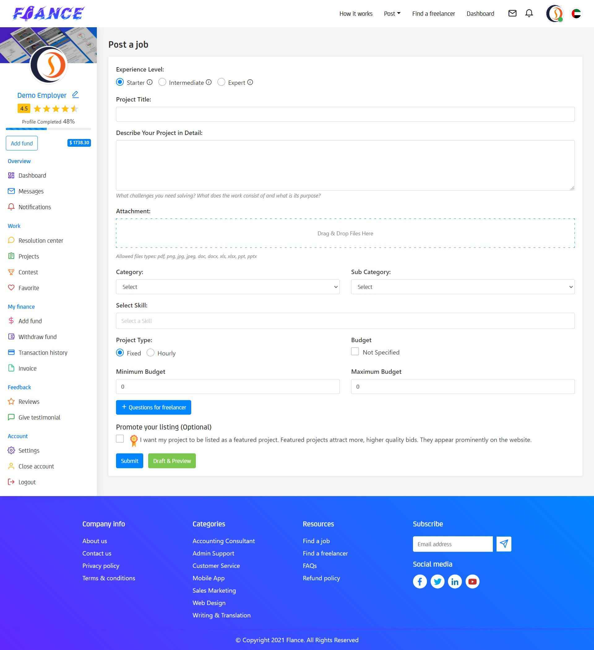 Wondering how the pages of freelance clone script are going to look like? Fret not – we got it covered. Check out the model pages from every section – Employer, Freelancer, Admin and other associated pages.