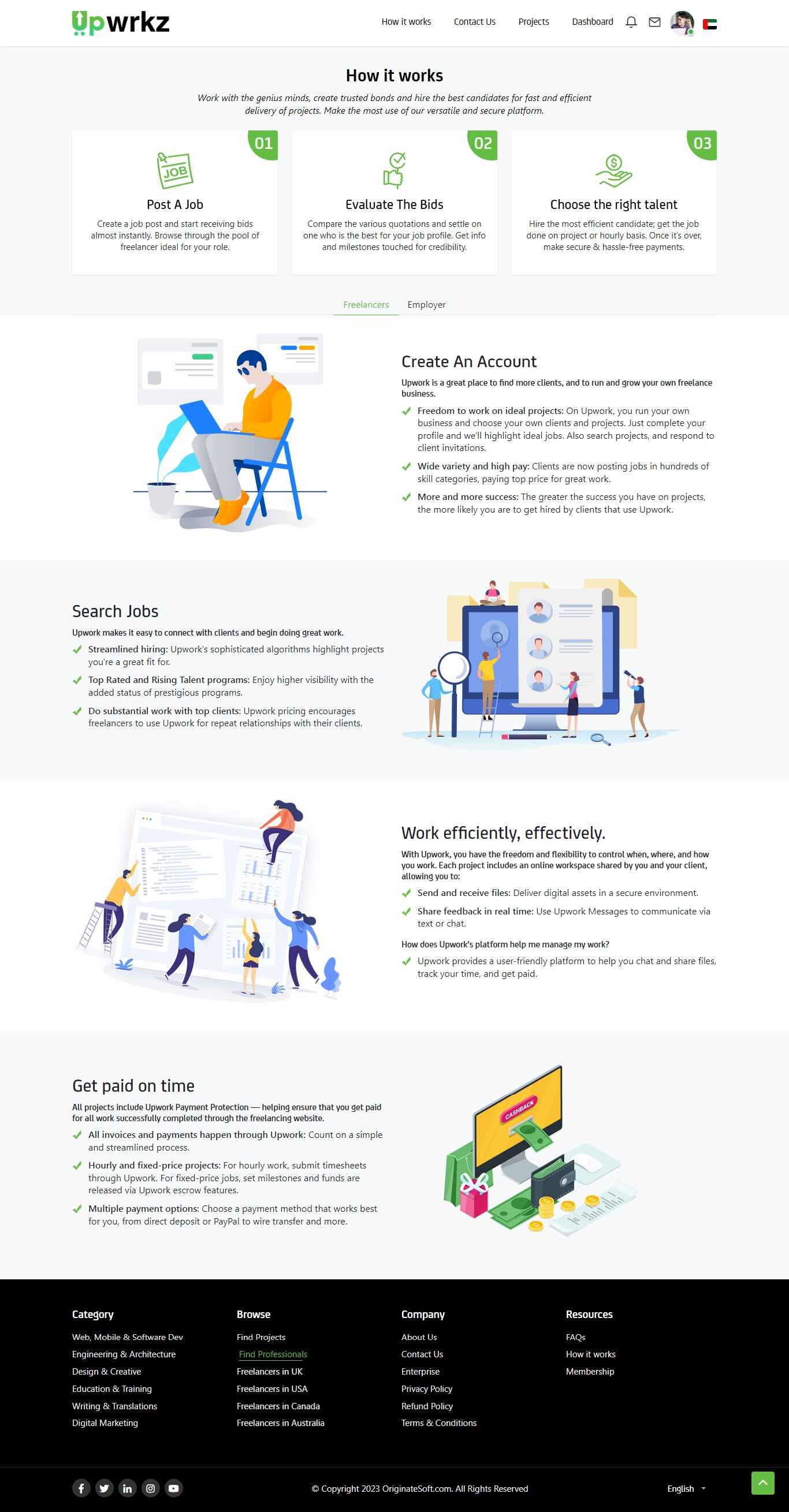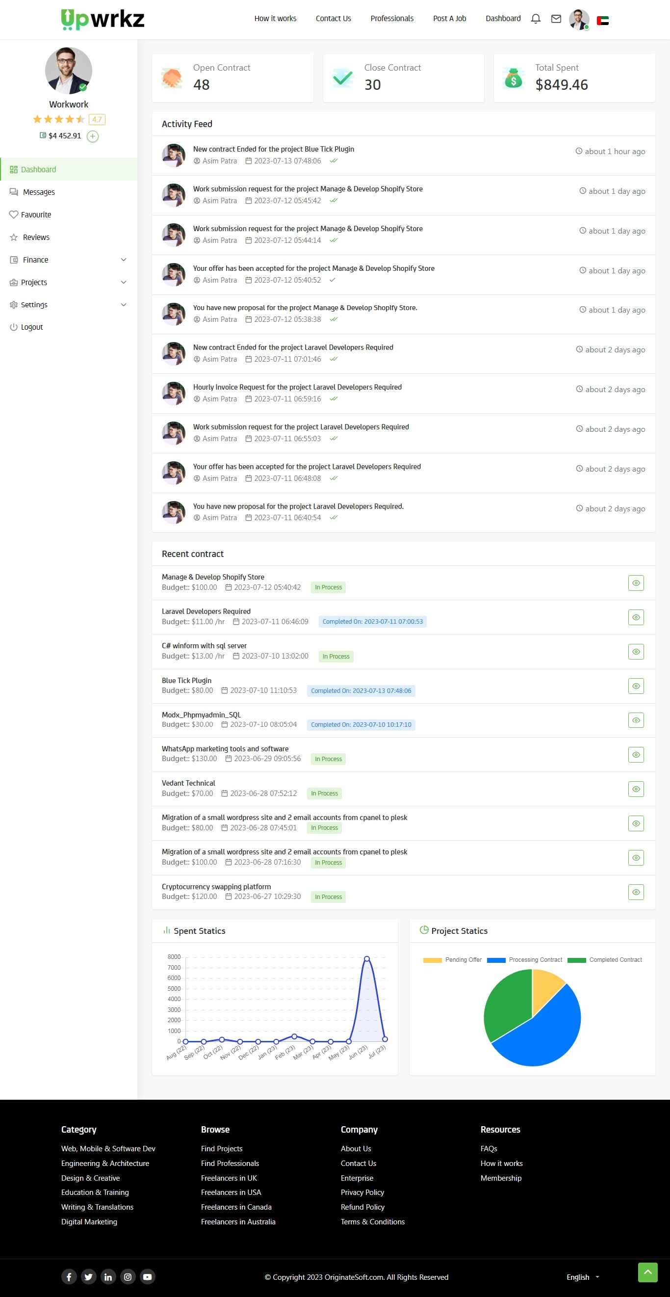 The admin dashboard is one of the most vital elements of a successful online freelance website. Our readymade Upwork clone comes with a powerful admin dashboard that enables website owners to effortlessly monitor and manage the freelance platform.